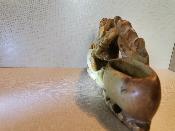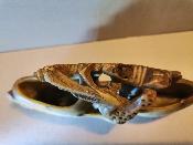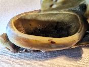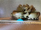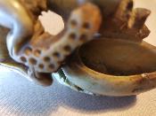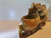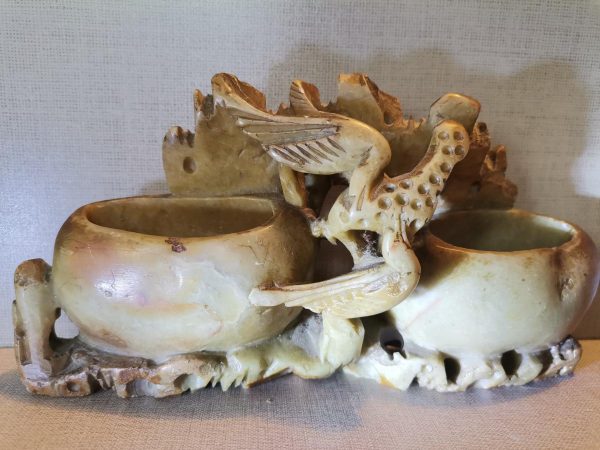 Ce pot de pinceau / peinture en stéatite chinoise est une œuvre d’art complexe sculptée à la main. Il présente une sculpture complexe d’un oiseau entre deux pots. Cette pièce est vraiment un chef-d’œuvre et pourrait être présentée dans n’importe quelle pièce.